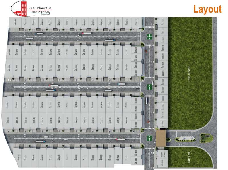 Construida dentro de un parque industrial conformado por 133 naves entre 250 m² y 600 m², con opción de juntar bodegas y obtener una superficie de hasta 7,000 m².