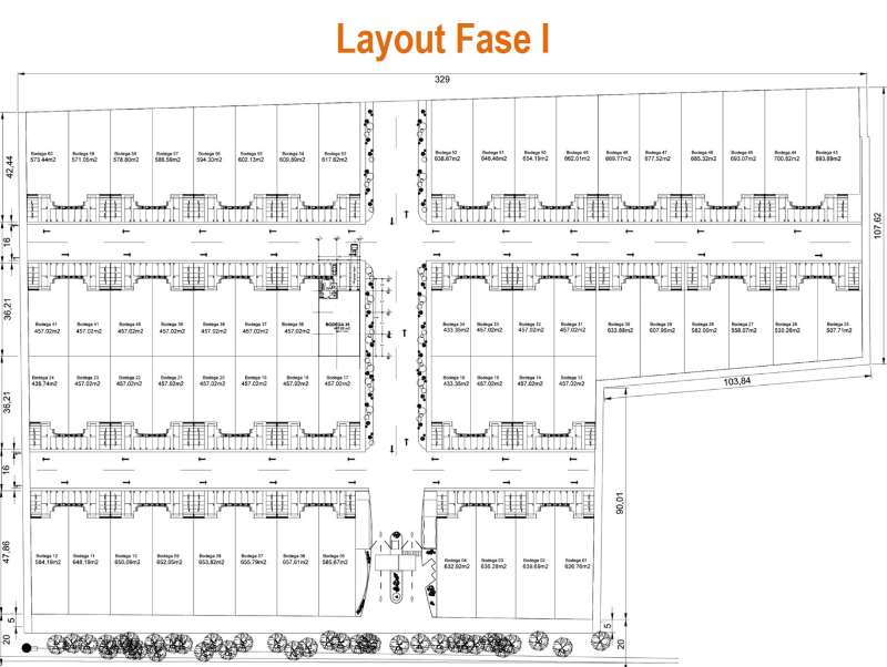 Complejo industrial conformado por 122 naves entre 430 m2 y 800 m2, con opción de juntar bodegas y obtener una superficie mayor, ubicado a 150 mts de la autopista a México.