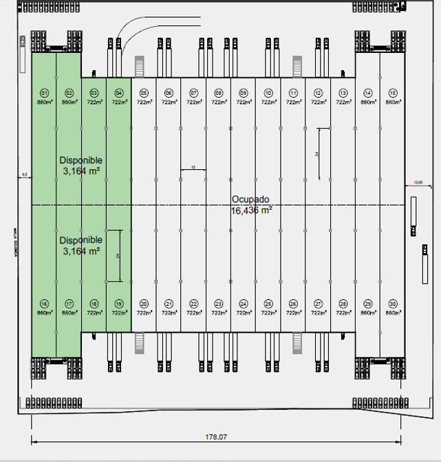 La nave forma parte de un conjunto industrial de 22,300 m² de construcción total, en uno de los hubs logísticos más importantes del Bajío.