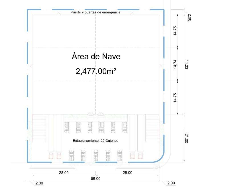 Área de Nave: 2,477 m / 26,662 pie2