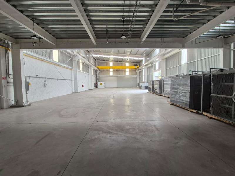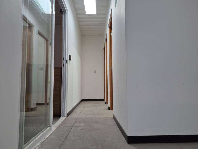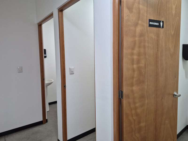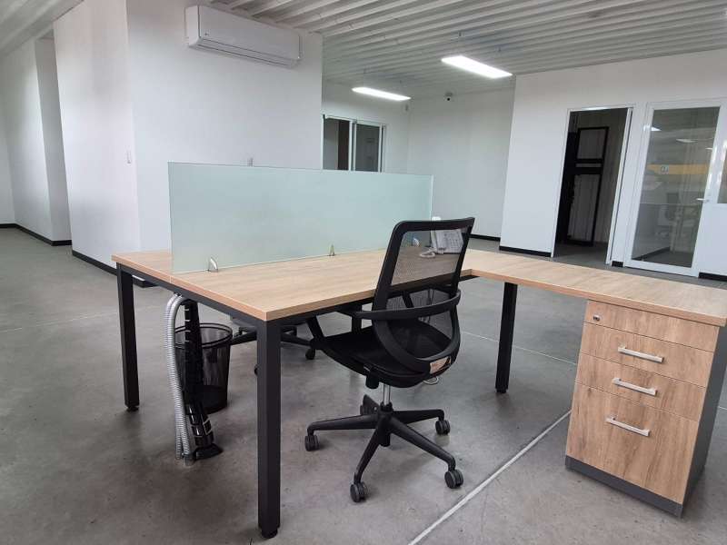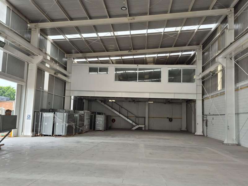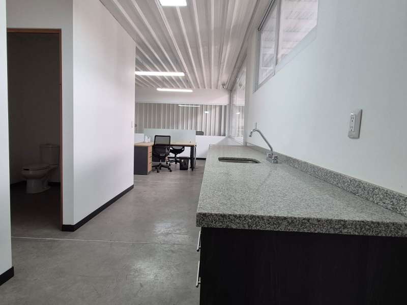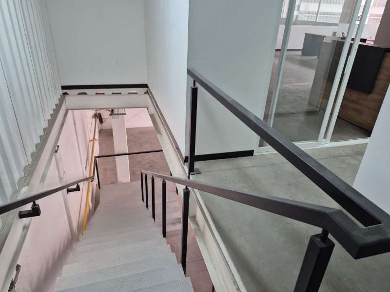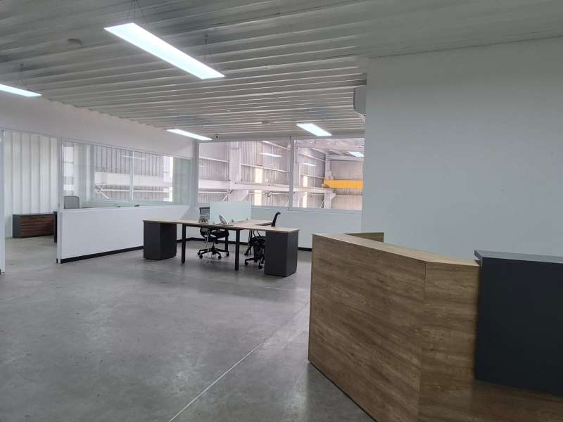 -Área de oficinas: 145 m² en mezanine, amueblada y con aire acondicionado (recepción, medio baño, sala de juntas, cocineta, privados y áreas de trabajo)