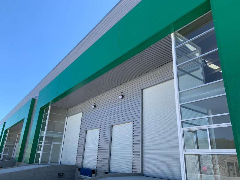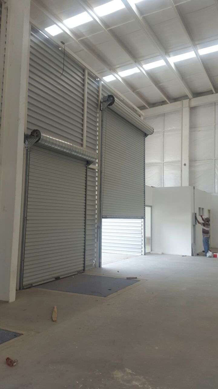 2 Rampas de concreto para carga y descarga, cortina enrollable de 4 mts X 4.50 mts