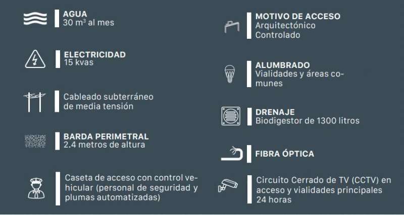- Circuito Cerrado de TV (CCTV) en acceso y vialidades principales 24 horas.